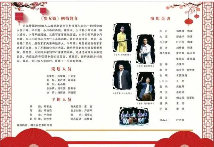 花鼓小戏《娶女婿》是一部以乡村振兴为主题,以文旅融合为创意,以成功人士回乡创业、“女娶男”独特婚俗等为元素创作的一部舞台作品。讲述了月江传媒创始人大江为了乡村发展,嫁入京河村,和爱人小月共同创业,成就美好姻缘的故事。